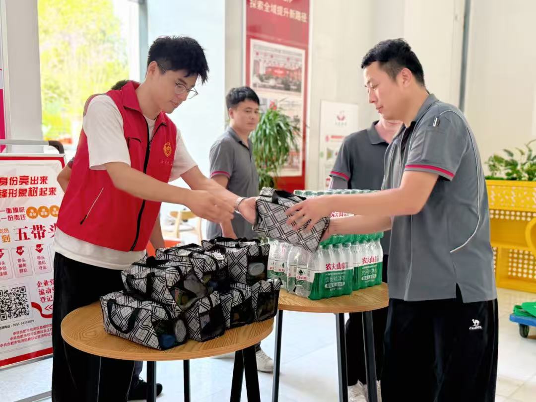 “師傅,天熱多補水!”在肥東縣榮電集團幸福驛站,幾名環衛工人接過工作人員遞來的礦泉水,瓶身的涼意瞬間驅散了幾分暑氣。