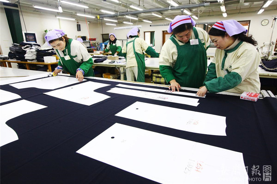 2月25日,馬鞍山經開區大同佳樂登(馬鞍山)有限公司員工在加工制作出口服裝。該公司產品90%出口到日本和歐美等國家和地區。今年以來,馬鞍山市進出口保持良好增長態勢,1月份,全市出口額達2.1億美元,同比增長65.2%,實現了開門紅。
