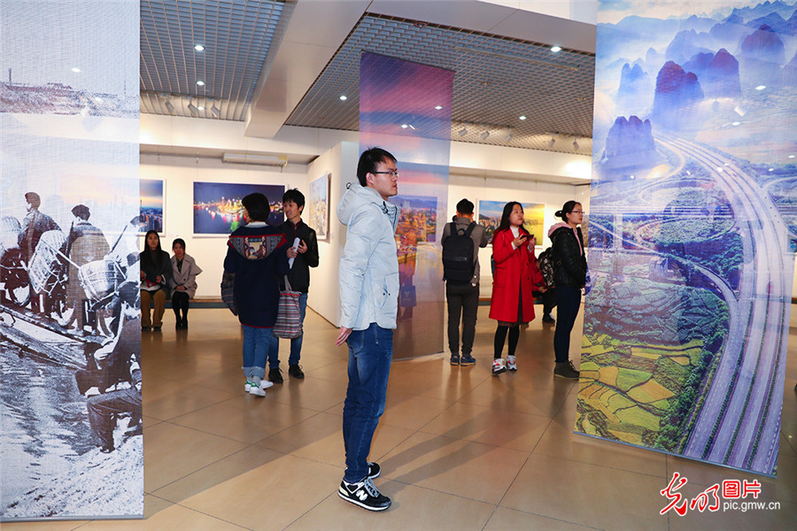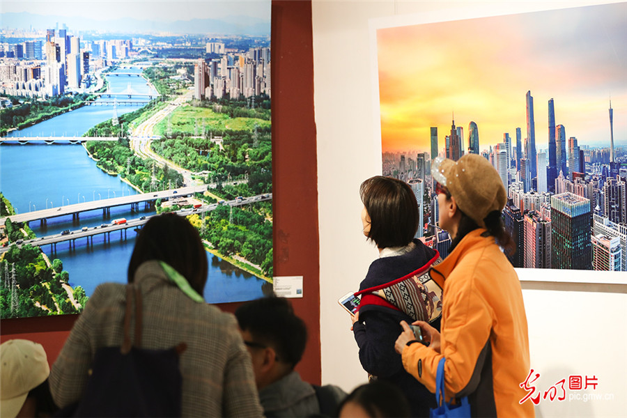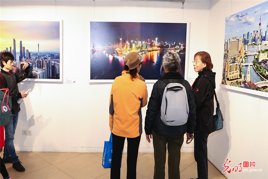 3月12日,喜迎新中國成立70周年——全國主流媒體“航拍中國”攝影圖片展在北京航空航天大學藝術館開幕。展覽由中國新聞攝影學會、北京航空航天大學、光明網聯合主辦,中國新聞攝影學會無人機攝影專業委員會、北京航空航天大學黨委宣傳部承辦。中國新聞攝影學會會長徐祖根,光明網總裁、總編輯楊谷,北京航空航天大學副校長張廣,中國新聞攝影學會無人機專業委員會主任王建華等先后在開幕式上致辭。中國新聞攝影學會副會長趙建偉、周朝榮、姚軍、丁偉,常務副秘書長陸中秋等,以及社會各界新聞工作者、攝影愛好者、北航師生代表參加開幕式。圖為觀眾在藝術館內參觀展覽。(光明網記者 潘迪攝/光明圖片)