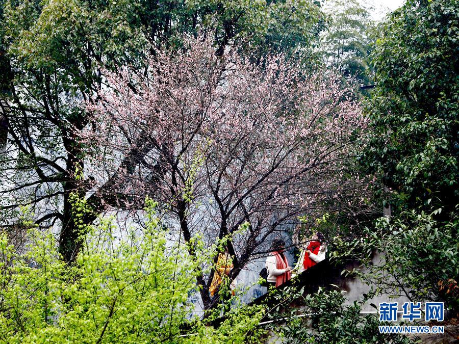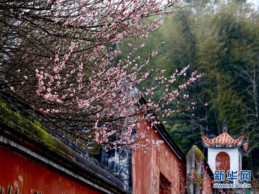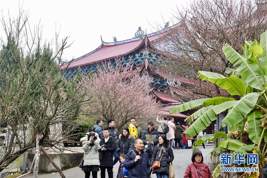 2月10日,游客在福州林陽寺內賞梅拍照。 新春佳節期間,位于福州北峰山區的千年古剎林陽寺內梅花相繼綻放,吸引眾多市民前往觀賞。林陽寺是福州五大禪寺之一,建寺至今已有千年歷史。 新華社記者 姜克紅 攝