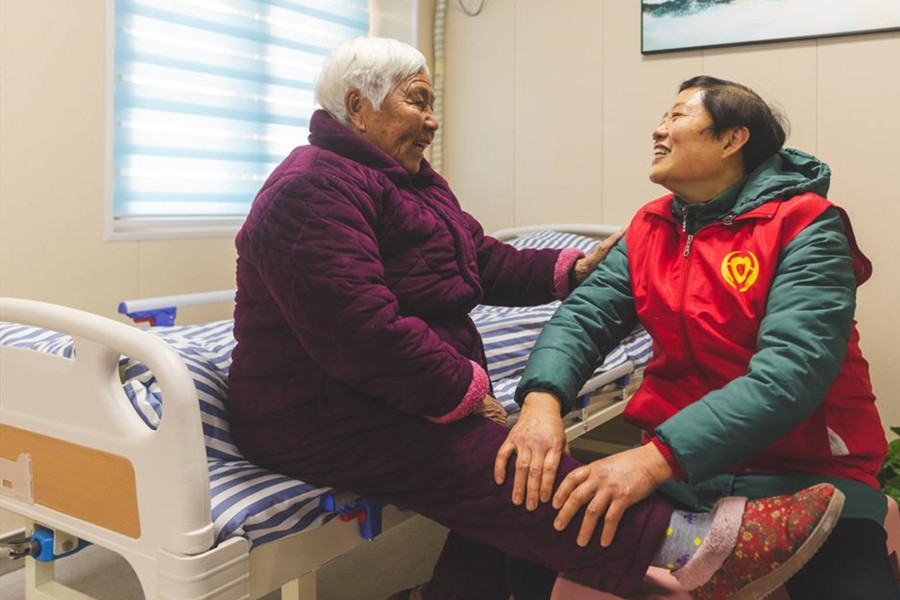 1月6日,在滁州市瑯琊區西澗社區養老服務站,志愿者為老人按摩護理。 建設完善8個街道養老服務中心、37個社區養老服務站是2020年瑯琊區十件為民辦實事中的一件。目前,該區已實現8個街道37個社區全覆蓋,基本建成了“居家社區機構相協調、醫療康養相結合”的養老服務體系,為老年人提供精準化、個性化、專業化的服務,在提升該區養老服務質量的同時,有效滿足了老年人持續增長的養老服務需要。