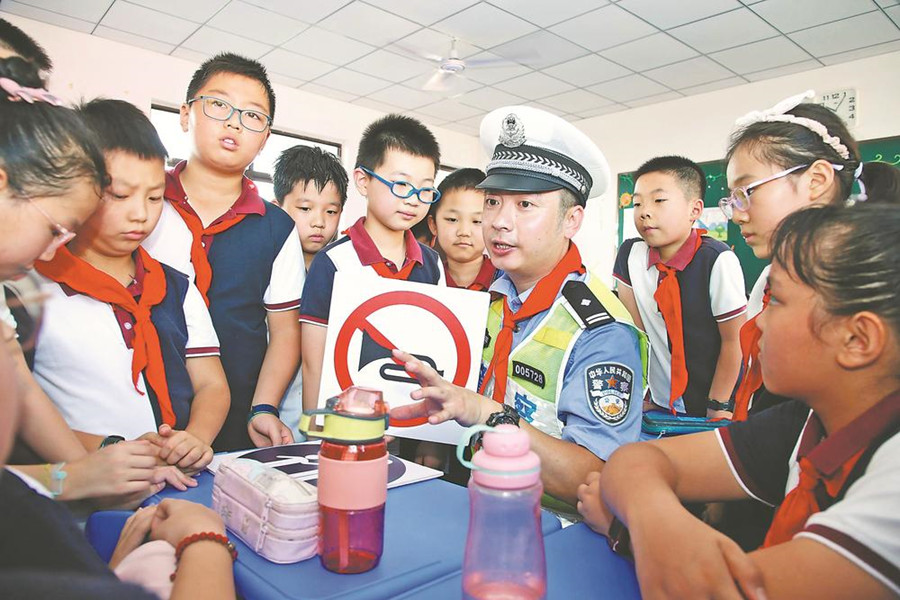 8月31日,合肥市公安局交警支隊(duì)組織民警來(lái)到南門(mén)小學(xué)森林城校區(qū),通過(guò)教育宣講、情景互動(dòng)等形式,在寓教于樂(lè)中傳遞交通安全知識(shí)。 通訊員 汪宜勝 攝