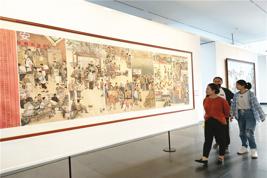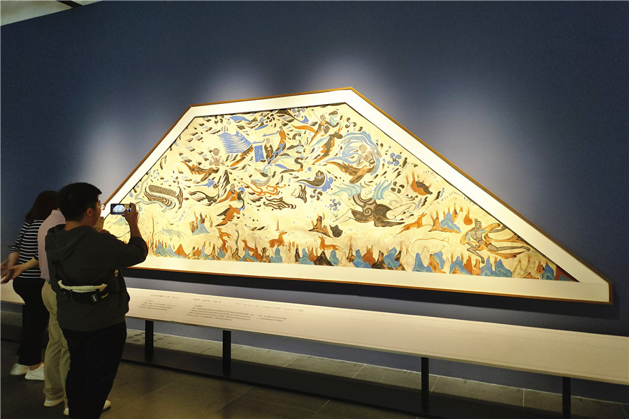其中,“安徽省重大歷史題材美術作品展”作品主題從近代到當代,涵蓋了國畫、油畫、版畫、雕塑等多種表現方式,以美術的形式記錄和反映安徽波瀾壯闊的歷史,表現了不同歷史時期重大事件、重要場景和杰出人物,描繪出一幅幅壯美畫卷。“敦煌壁影——壁畫與數字藝術展”展出當代名家所臨摹的敦煌壁畫作品,共分為游絲墜天、絢彩積巖、紋采飛揚、謀局如意、萬象匯現五大板塊,觀眾還能在數字藝術展廳沉浸式體驗敦煌的千年光影世界。