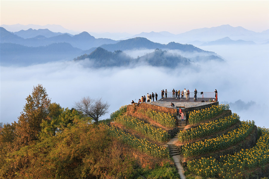 11月1日,黃山市歙縣霞坑鎮石潭村,山巒與云海相呼應,美不勝收。