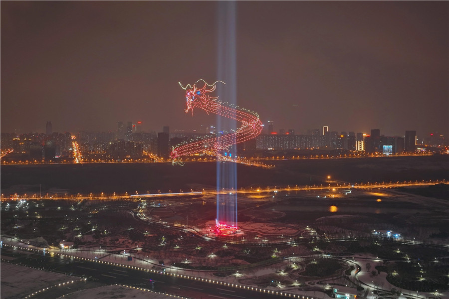 2月24日晚,合肥駱崗公園上空,1600架無人機進行陣列表演,上演炫酷燈光秀,慶祝元宵佳節。記者 程 兆 許根宏 攝