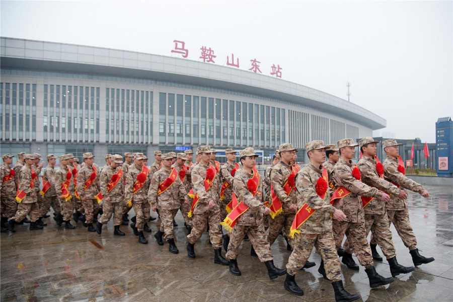 3月14日上午,來自馬鞍山市的280名熱血青年身著戎裝,匯集在馬鞍山東站廣場(chǎng),參加馬鞍山市2024年上半年新兵入伍歡送儀式,在鏗鏘誓言聲中踏上參軍報(bào)國(guó)征程。本報(bào)通訊員 胡智慧 董景偉 攝