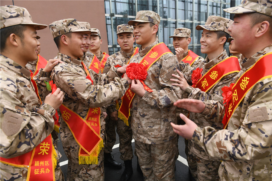 3月17日,入伍新兵參加阜陽市潁州區(qū)新兵入伍歡送活動(dòng)。阜陽市1000余名新兵于18日啟運(yùn),陸續(xù)奔赴全國(guó)各地軍營(yíng)。特約攝影 王 彪 攝