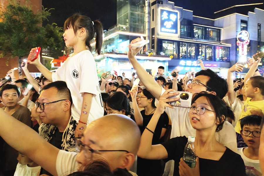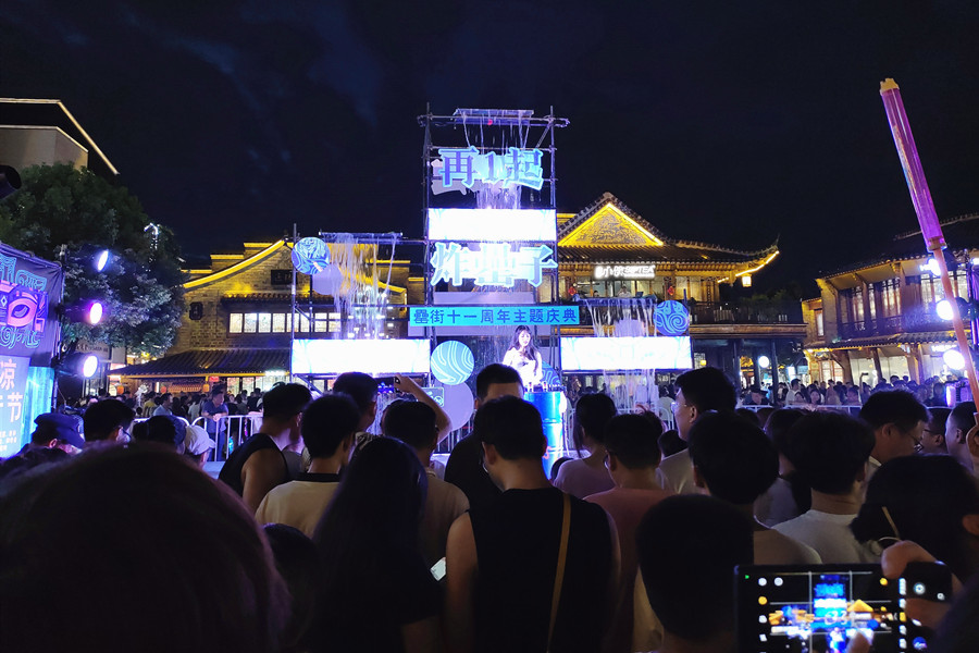 本網(wǎng)訊(記者 史洪芳)炎熱夏季,火熱“夜經(jīng)濟(jì)”點(diǎn)亮了合肥的夜晚。納涼音樂(lè)節(jié)、青銅朋克主題巡游、全場(chǎng)五折嗨吃……近日,作為合肥夜間經(jīng)濟(jì)的標(biāo)桿,罍街舉行了十一周年主題慶典,吸引了廣大市民和游客前往游玩體驗(yàn)。活動(dòng)現(xiàn)場(chǎng)熙熙攘攘,大家或在小吃攤前排起長(zhǎng)隊(duì),或跟隨著音樂(lè)舞動(dòng),或觀賞主題巡游,升騰起滿滿的人間煙火氣,熱鬧非凡。