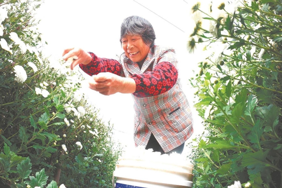 10月21日,歙縣富堨鎮(zhèn)青山村農(nóng)民首日采摘第二季白菊花,該村種植的白菊花品種每年7月、10月分別采摘一次,兩季采摘質(zhì)量和數(shù)量均有提高,畝均收入都超萬元。