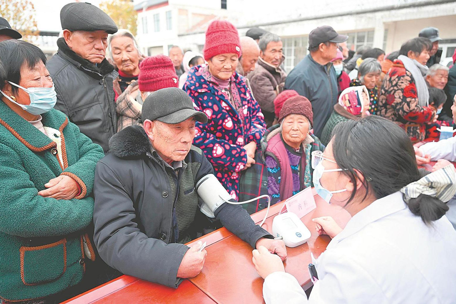 12月9日,亳州市譙城區大楊鎮丁固村駐村工作隊聯合亳州市中醫院開展義診活動,醫務人員免費提供健康檢查、測量血壓等服務。通訊員 劉勤利 攝