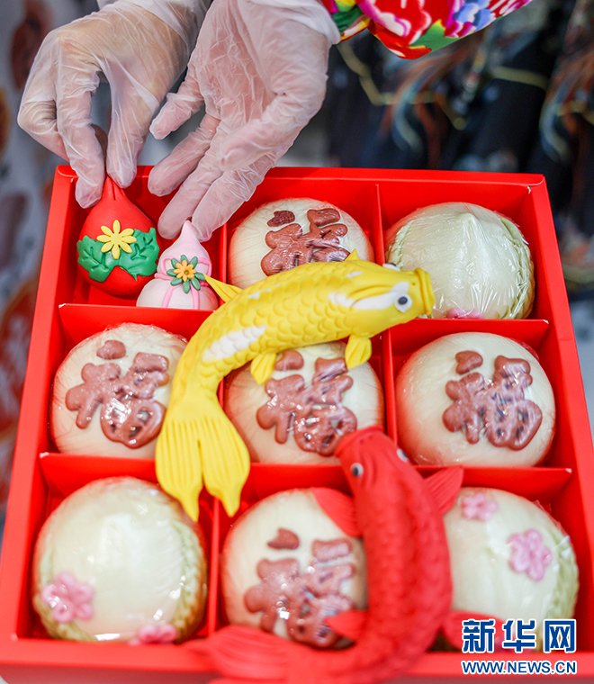 隨著農歷蛇年臨近,安徽省淮北市濉溪縣花饃非遺傳承人郭鈺加緊趕制“生肖蛇”“鯉魚”“花束”等富有美好寓意的花饃,供應節日市場,為即將到來的蛇年增添了濃濃的喜慶氣氛。新華網發(王文 攝)