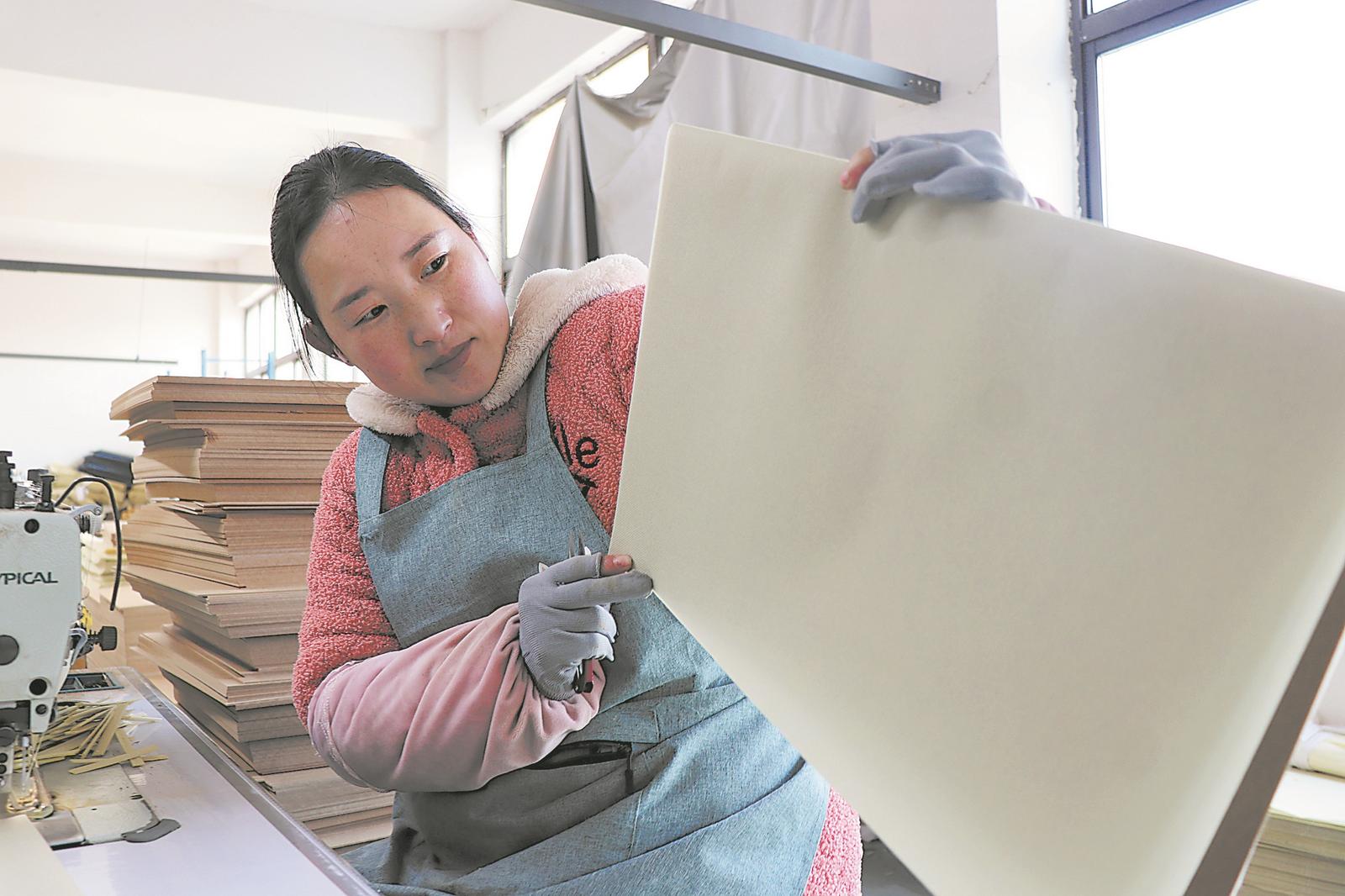 1月12日,亳州市譙城區牛集鎮牛集村一家箱包廠生產車間,工人在制作箱包。近年來,牛集鎮大力發展鄉村箱包、電子、服裝、足藥包等微工廠,帶動附近村民在家門口就業。通訊員 武清海 攝