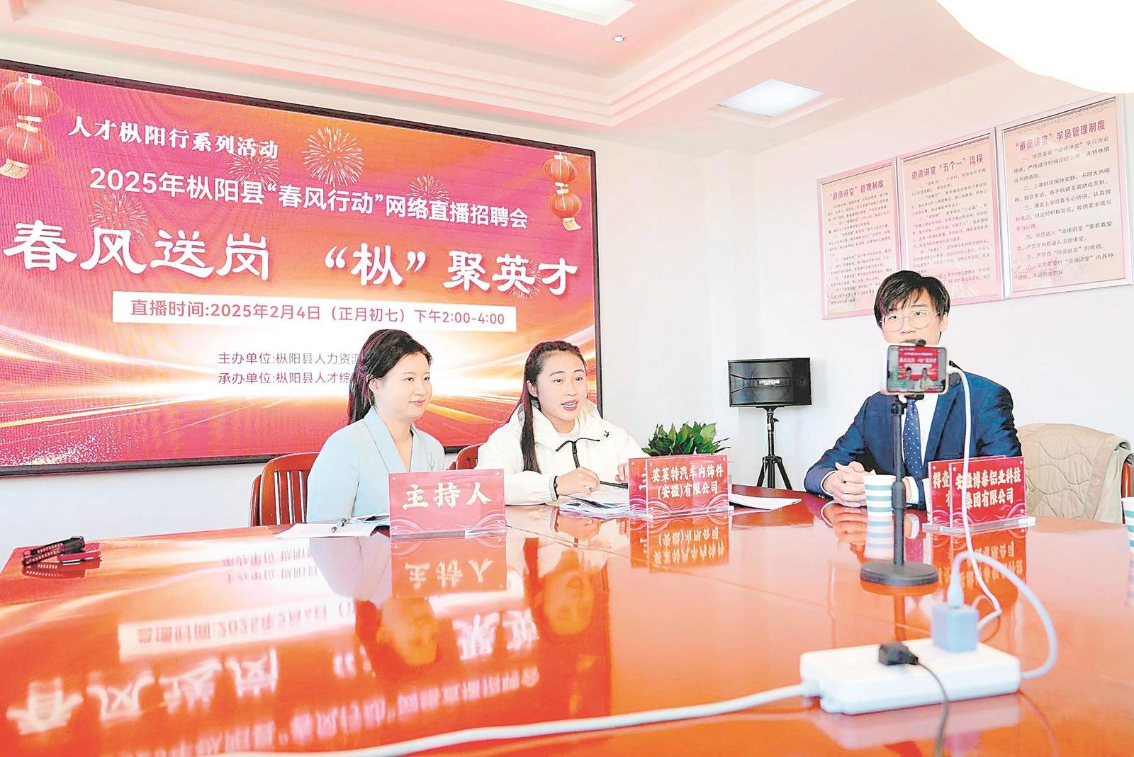 2月4日,樅陽縣網(wǎng)絡(luò)主播通過直播方式發(fā)布崗位招聘信息。當(dāng)日,樅陽縣舉辦2025年“春風(fēng)行動(dòng)”網(wǎng)絡(luò)直播招聘會(huì),這次活動(dòng)共邀請了57家企業(yè)參與,提供崗位超過2700個(gè)。通訊員 王章志 攝