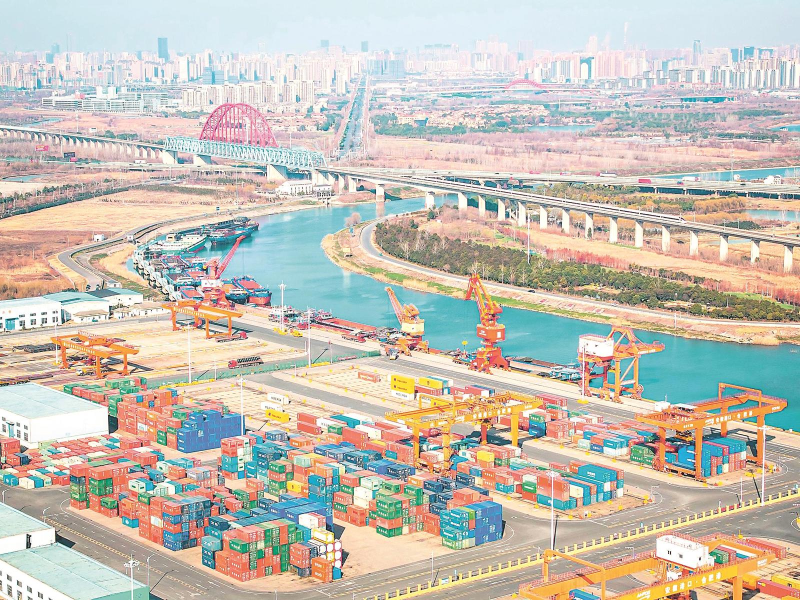 2月6日拍攝的合肥港國際集裝箱碼頭,一片繁忙景象。記者 范柏文 攝