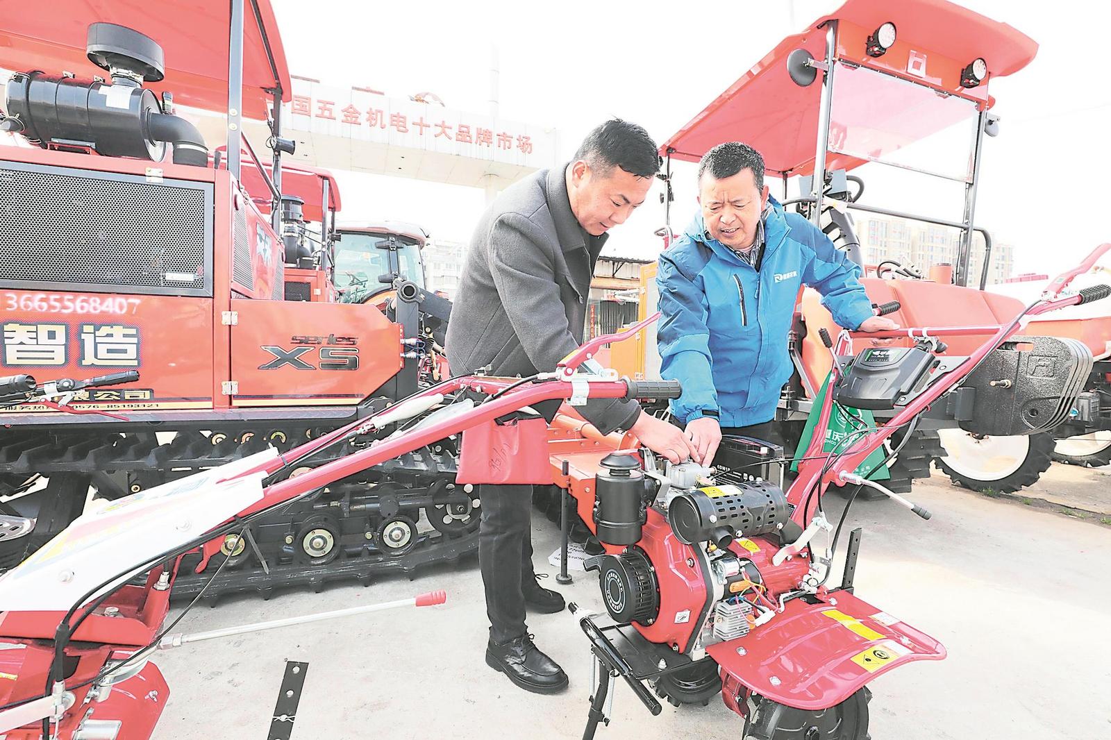 2月6日,在安慶市宜秀區(qū)農(nóng)機銷售市場,農(nóng)民正在選購農(nóng)機設(shè)備。通訊員 江勝 攝