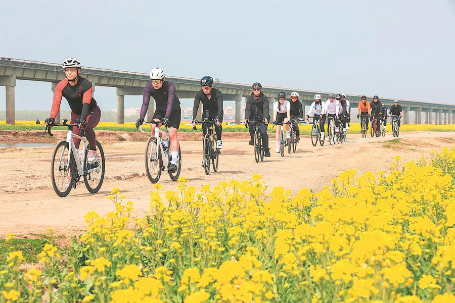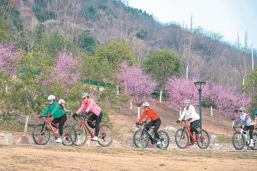 3月8日,在亳州市譙城區林擁城景區梅園綠道上,騎行愛好者結伴而行,樂享戶外騎行運動好時光。 通訊員 程誠 攝