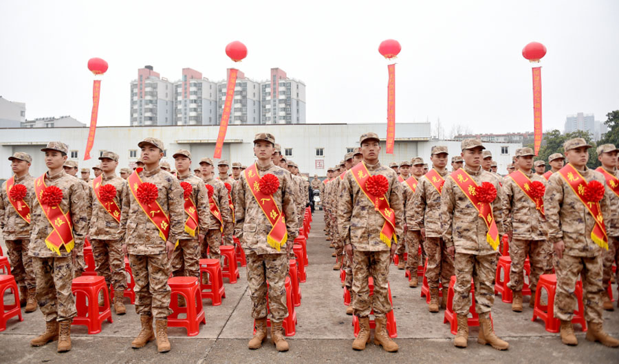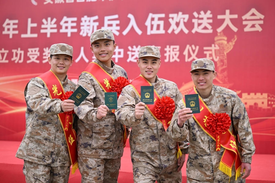 當日,安徽省合肥市廬陽區隆重舉行2025年上半年新兵入伍儀式歡送大會暨立功受獎軍人集中送喜報儀式,即將奔赴軍營的新兵身著迷彩戎裝,離開家鄉告別親人,開啟新的人生征途。(徐偉 孫勁 來路 記者 史睿雯)