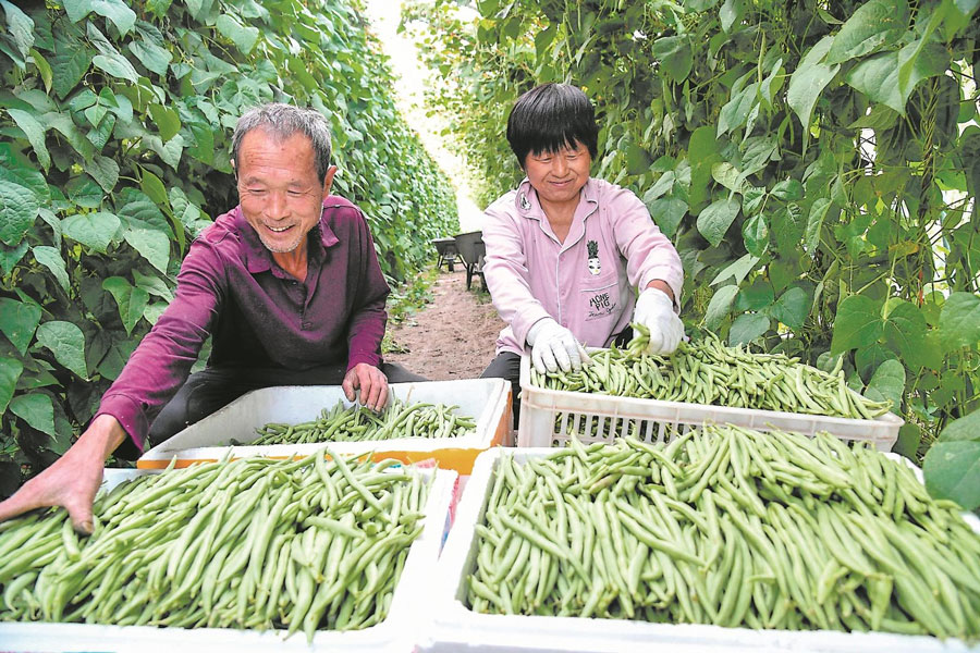 5月6日,亳州市譙城區(qū)五馬鎮(zhèn)常莊村蔬菜種植基地,農(nóng)民在采摘四季豆供應(yīng)市場(chǎng)。近年來,譙城區(qū)積極引導(dǎo)各村因地制宜發(fā)展種植業(yè),拓寬農(nóng)民增收渠道。通訊員 張劉艷 攝