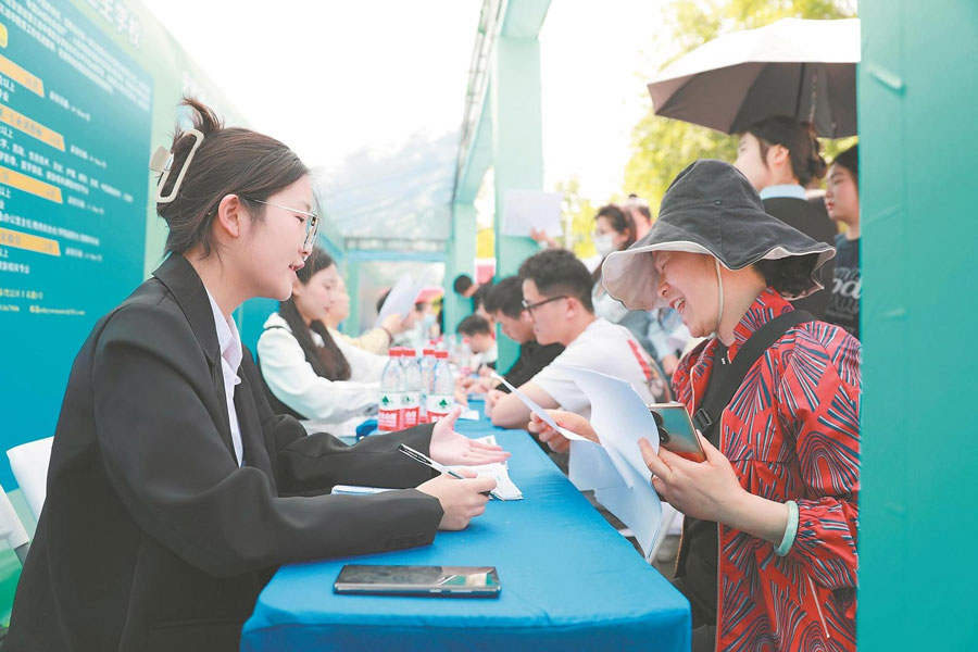 2025年4月26日,眾多求職者在安徽省蕪湖市神山公園“2025年蕪湖市菁英人才春季招聘會(huì)”現(xiàn)場求職。 通訊員 陳效寶 攝