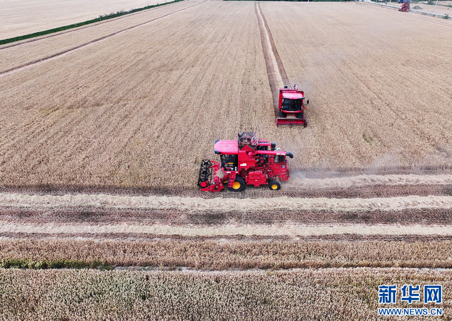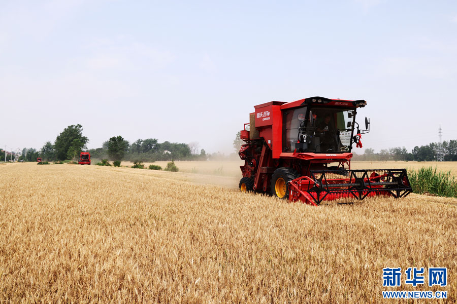 ??眼下,安徽省亳州市蒙城縣的小麥陸續(xù)成熟,當(dāng)?shù)丶皶r組織各類農(nóng)機具全力收割小麥,確保夏糧應(yīng)收盡收。新華網(wǎng)發(fā)(胡衛(wèi)國 攝)