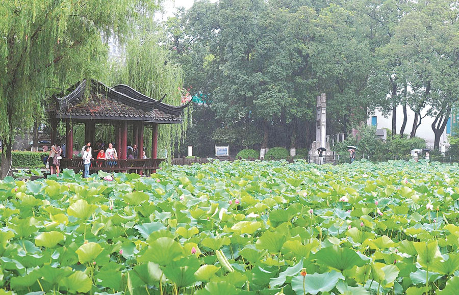 6月21日,合肥市包河公園里的荷花盛放,吸引市民前來游玩賞荷。通訊員 熊偉 攝