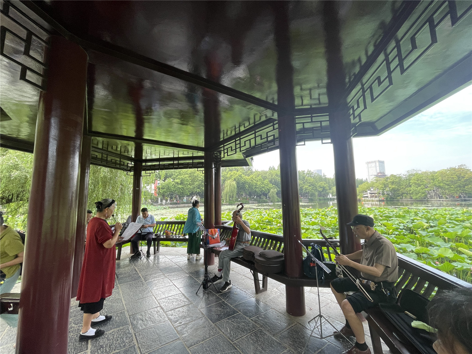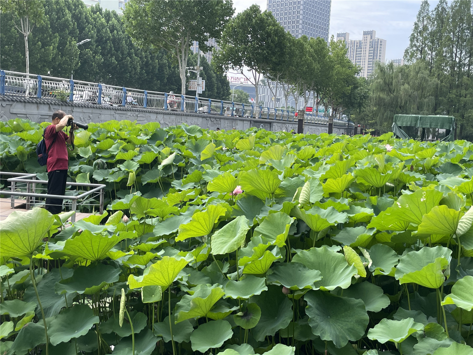 本網訊(記者 陸迪)時值盛夏,合肥包公園的荷花進入盛花期,吸引眾多市民和游客前來觀賞。水面上,大片荷葉層層疊疊,荷花嬌艷綻放,或紅或白,與周邊建筑相互映襯,構成了一幅絕美的夏日畫卷。