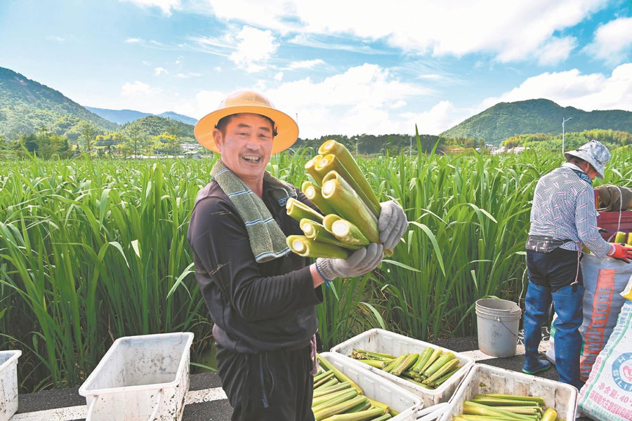 7月13日,在岳西縣石關鄉馬畈村,當地菜農正在采收高山茭白。近年來,茭白成了岳西縣農民增收的重要產業。 通訊員 王先國 攝