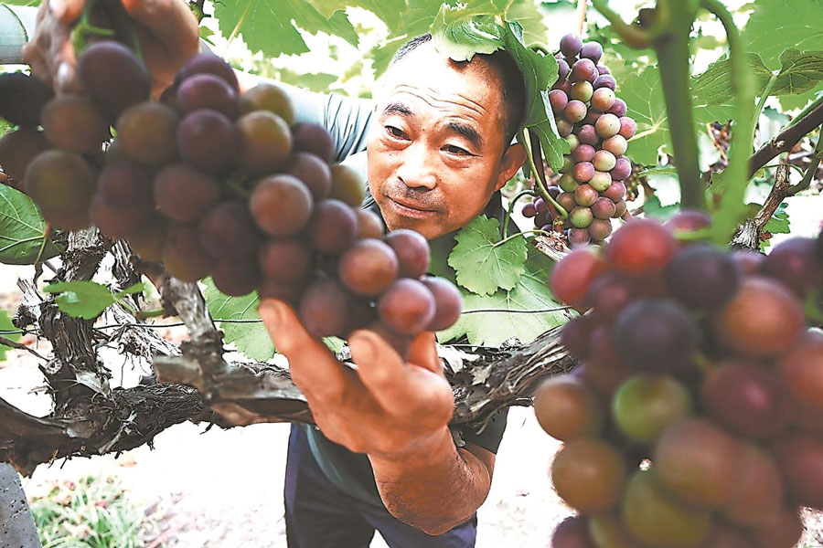 7月12日,壽縣炎劉鎮石埠村,村民們正在一家葡萄種植合作社內采摘葡萄。目前,葡萄迎來上市“黃金期”,將極大豐富市民們的“果盤子”。通訊員 萬前進 攝