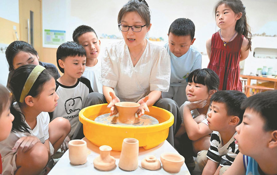近日,亳州市青少年活動中心,孩子們在老師的指導下學習陶藝。暑假期間,亳州市不少小朋友來到青少年活動中心,學習舞蹈、戲曲、陶藝、繪畫等,增長才藝,豐富假期生活。通訊員 劉勤利 攝