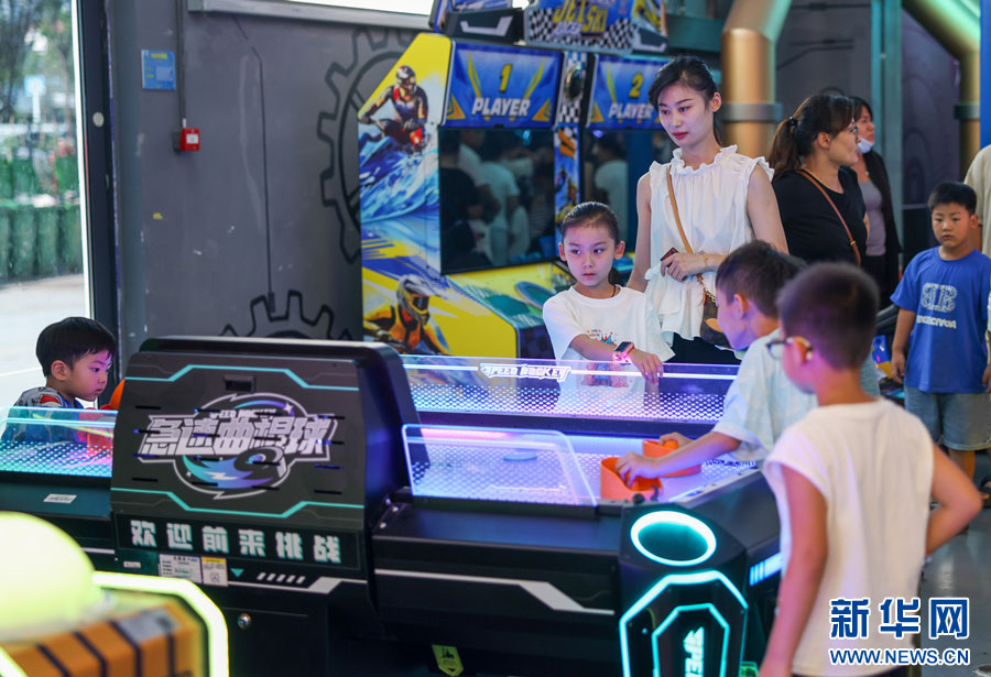 ??近日,在安徽省淮北市相山區夔牛天街,眾多家長趁暑期帶著孩子前來游玩。