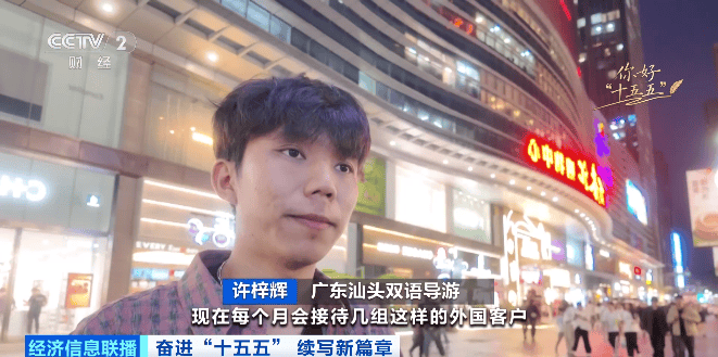 廣東汕頭雙語導游 許梓輝:法國、美國、德國、波蘭的游客很多。現在每個月會接待幾組這樣的外國客戶,吃美食、看文化、看風景。