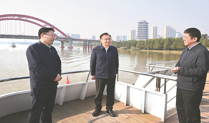 十一月十三日,省委書記梁言順在潁河乘船察看河流水質和岸線環境,了解淮河干支流治理等情況。記者 楊竹 許昊 攝 (宗禾)11月13日,省委書記梁言順赴阜陽市調研并宣講黨的二十屆四中全會精神。他強調,要深入學習貫徹四中全會和習近...