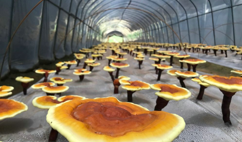 上面光伏板,下面靈芝大棚。大灣村農光互補扶貧電站年發電量28萬千瓦,年收益28萬元;靈芝大棚8個,一年生產靈芝6萬棒,年收入30萬元左右。