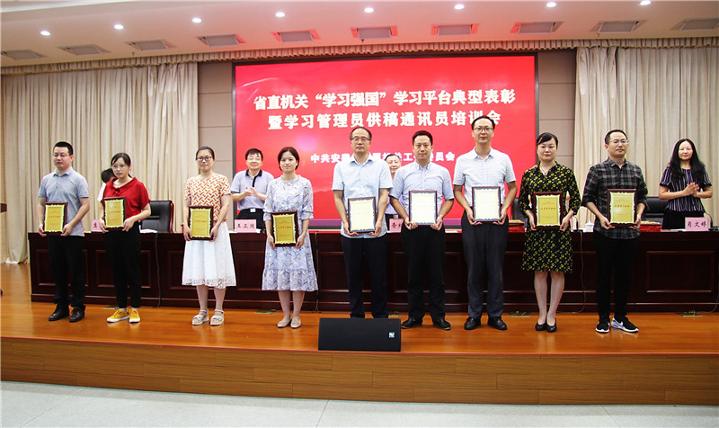 會(huì)上,各組受表彰人員依次上臺(tái)領(lǐng)取證書。評(píng)選省委網(wǎng)信辦等18個(gè)單位為優(yōu)秀學(xué)習(xí)組織,省委辦公廳何孝勇等20名同志為優(yōu)秀學(xué)習(xí)管理員,省直機(jī)關(guān)工委孫長(zhǎng)江等10名同志為優(yōu)秀供稿通訊員,省紀(jì)委監(jiān)委機(jī)關(guān)李江興等184名同志為學(xué)習(xí)標(biāo)兵。