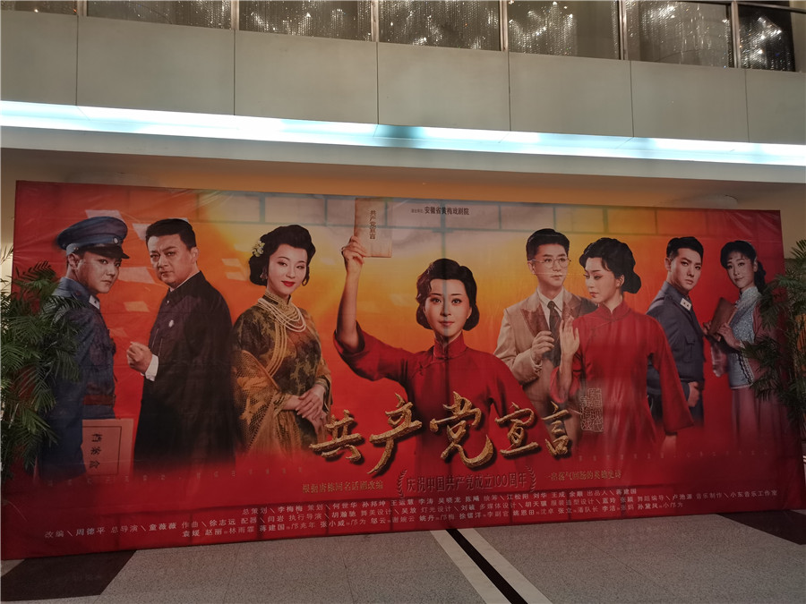 為向中國(guó)共產(chǎn)黨成立100周年獻(xiàn)禮,安徽省黃梅戲劇院精心創(chuàng)排根據(jù)唐棟同名話劇改編的黃梅戲《共產(chǎn)黨宣言》。該劇故事背景是,1927年國(guó)民黨反動(dòng)派背叛國(guó)民革命,大肆屠殺共產(chǎn)黨人,共產(chǎn)黨員林雨霏將生死置之度外,堅(jiān)持自己親手刻寫油印《共產(chǎn)黨宣言》,并長(zhǎng)期用這本“小冊(cè)子”宣傳共產(chǎn)主義革命思想。