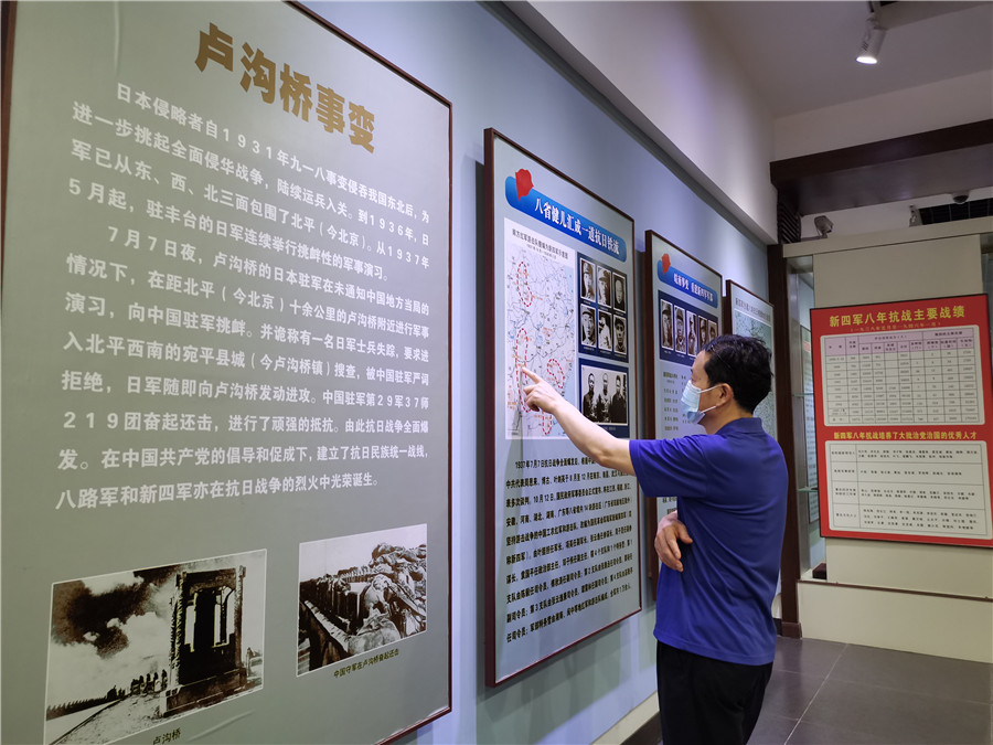 “八年浴血日寇投降,烈士英靈得到慰藉,鐵軍精神青史留名。”這是新四軍紀念林陳列館《新四軍頌》中的一段文字。陳列館以國歌為序曲、長城為背景、新四軍華中抗戰為主線,圖文并茂,形象生動地講述新四軍抗日斗爭的輝煌歷史。黨員們認真觀看革命文物、閱讀圖文資料,詳細了解新四軍前仆后繼、英勇頑強抗擊日本侵略者的悲壯故事。新四軍的革命英雄主義和愛國主義精神以及依靠群眾、關愛群眾的優良作風,讓黨員們接受了一場精神上的洗禮。